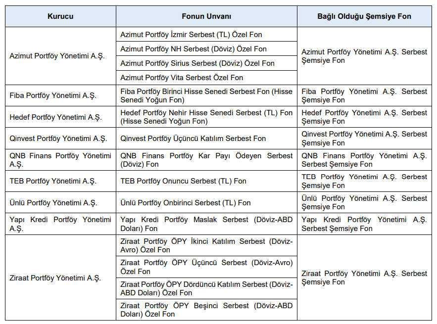Aşağıda unvanlarına yer verilen fonların katılma paylarının ihracına ilişkin izahnamelerin onaylanması talepleri olumlu karşılanmıştır.