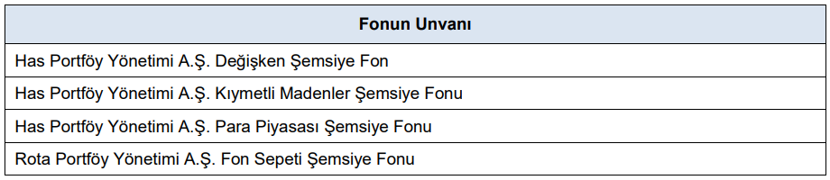 - Aşağıda unvanlarına yer verilen şemsiye fonların kuruluşlarına izin verilmesi taleplerinin olumlu karşılanmasına karar verilmiştir.