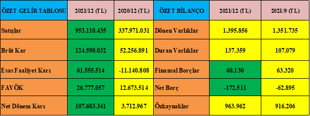 - Firma uzun vadeli borçlarının neredeyse tamamını ödemiş diyebiliriz, 530 Milyon TL borç ödemesi yapılmış.