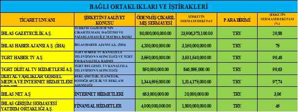 Bünyesinde TGRT FM, İhlas Haber Ajansı ve Türkiye Gazetesi adlı Türkiye’de faaliyet gösteren medya yayın organları ve TGRT Haber, TGRT Belgesel ve TGRT EU adlı kanal bulunmaktadır.