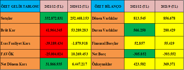 - Firmanın Genel Yönetim Giderleri ve Pazarlama Giderleri %50 oranında artmış, iki kalemin toplamı 80 Milyon TL ve bu şirket için yüksek bir rakam.