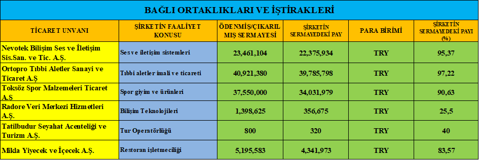 Yatırım portföyünde bulunan şirketlerin bazıları şunlardır;