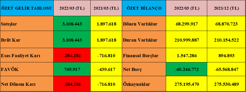 - Firma satışlarını ve brüt karlarını %50-100 arasında arttırmış olmasına rağmen esas faaliyetlerinden zarar etmiş, geçen yılın aynı dönemine göre %60 daha az zarar etmiş.