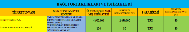 Şirket Ocak 2014’de Kayseri merkezli Elma Çiftlikleri sahibi ve işletmecisi Meyfit Tarım Meyve ve Fidan Üreticiliği Sanayi ve Ticaret A.Ş.’de %50 pay almıştır.