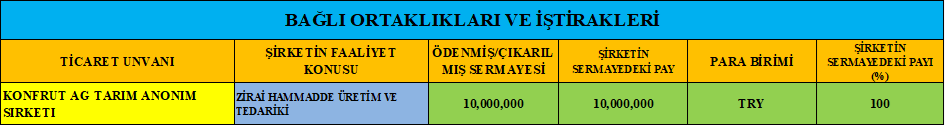 KONFRUT GIDA SANAYİ VE TİCARET ANONİM ŞİRKETİ, meyve suyu konsantreleri ve meyve püresi üretimi yapan bir şirkettir.