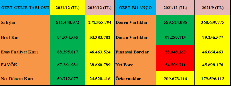 - Firmadan beklentimiz kapasitesini arttırması ve ihracattan aldığı payı iki katına çıkarmasıdır. Mart/2022 mali verilerinin daha iyi geleceğini düşünüyorum.