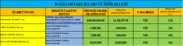 Firma şu anda inşaat sektöründe teknik alanda faaliyetlerini sürdürmektedir, bağlı ortaklıkları ve iştirakleri üzerinden yapmaktadır.