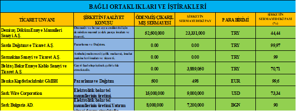 Ayrıca firmanın bünyesinde bulunan şirketlerin listesi şu şekildedir;