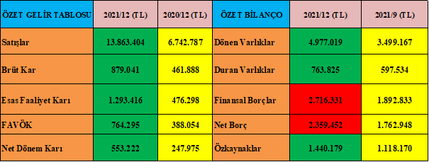 - Firmanın kısa vadeli yükümlülüklerinde %100 artış var, bu artışın yoğunluğu ticari borçlarından gelmektedir.