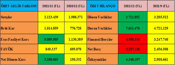 - Ancak firma satışlarını doğru orantılı artıramamış, Mart/2022 mali tablolarında o anlamda da kıymetli artışlar meydana geleceğini düşünüyorum.